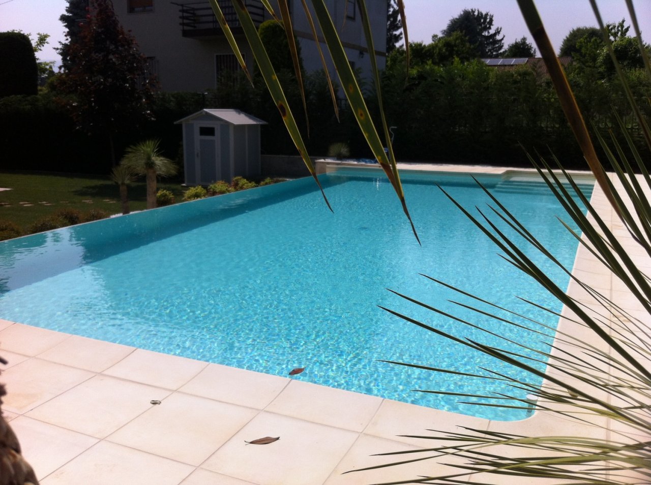 piscina a doppia profondita con scala alla tropezienne e pvc colore sabbia e bordo micheletto