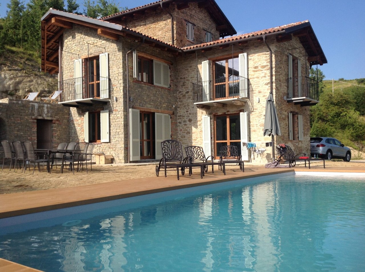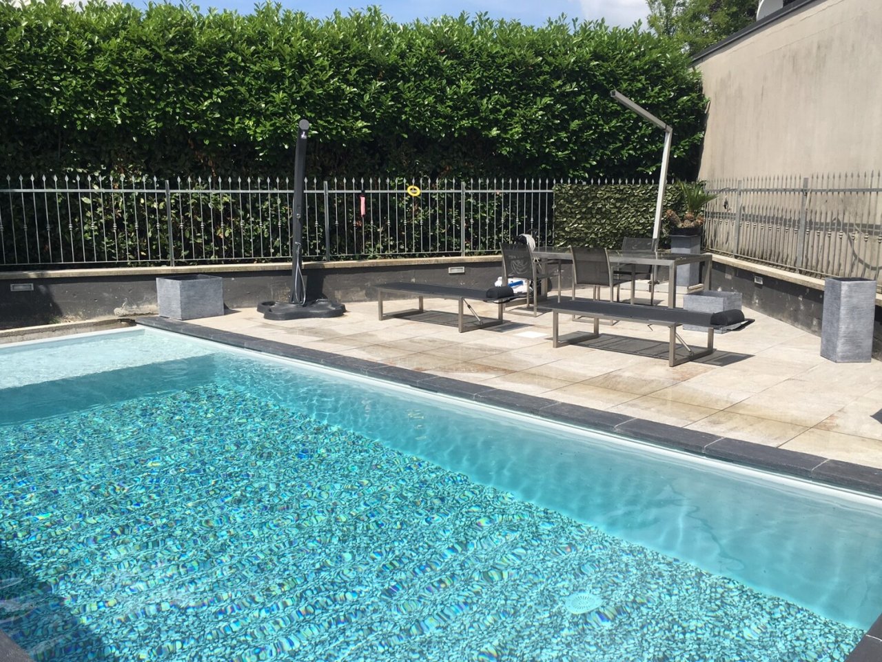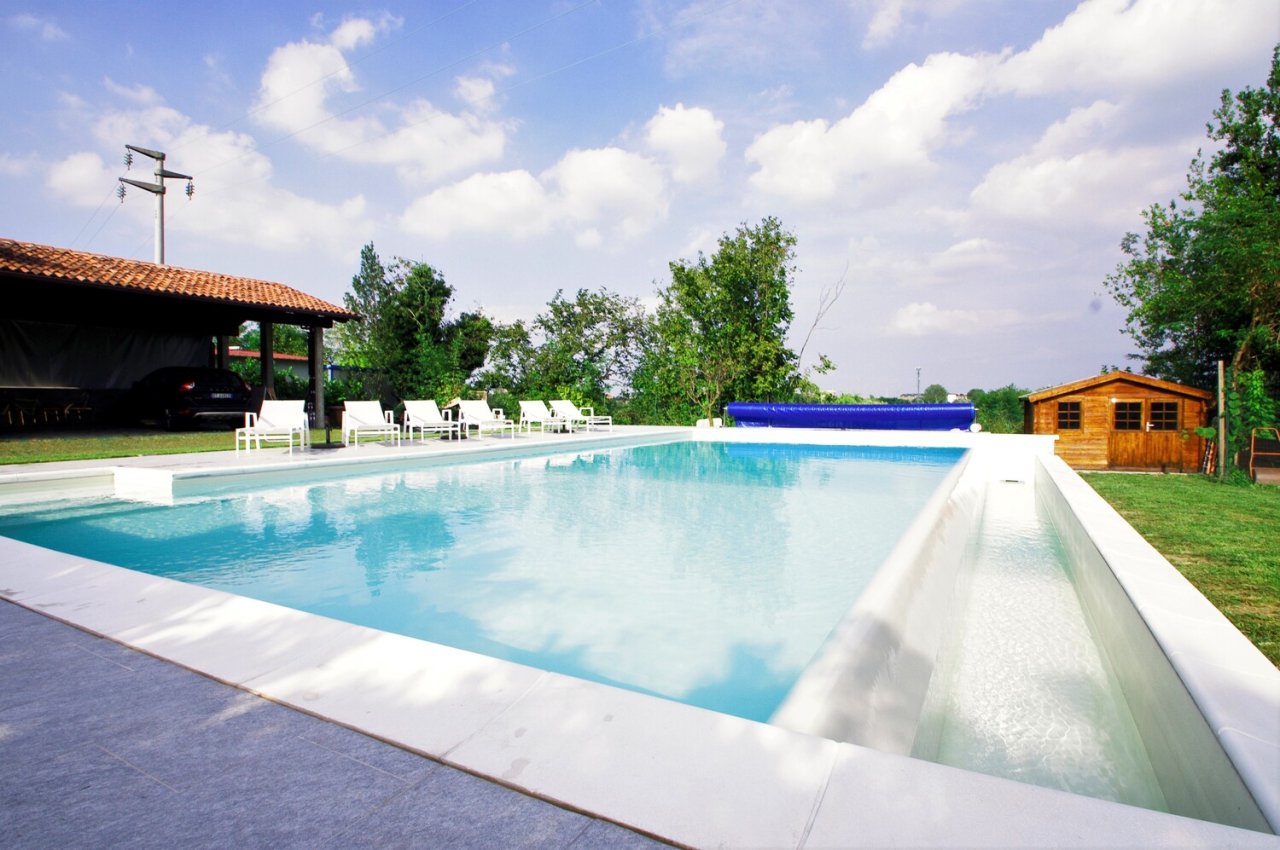 piscina privata con rivestimento esterno in pietre e trattamento ad elettrolisi salina