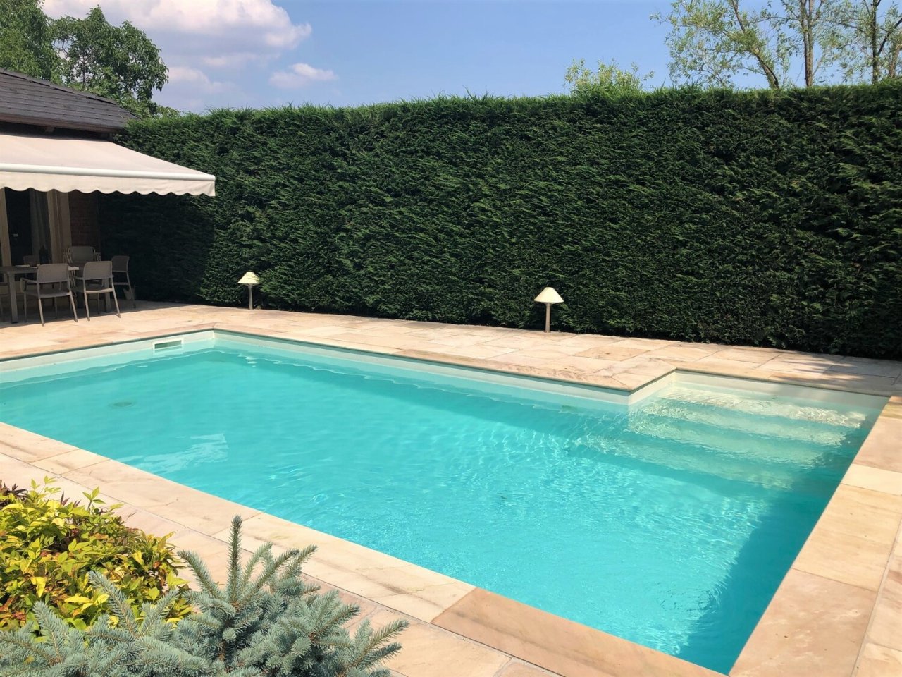 piscina su misura con pvc colore sabbia e elettrolisi salina
